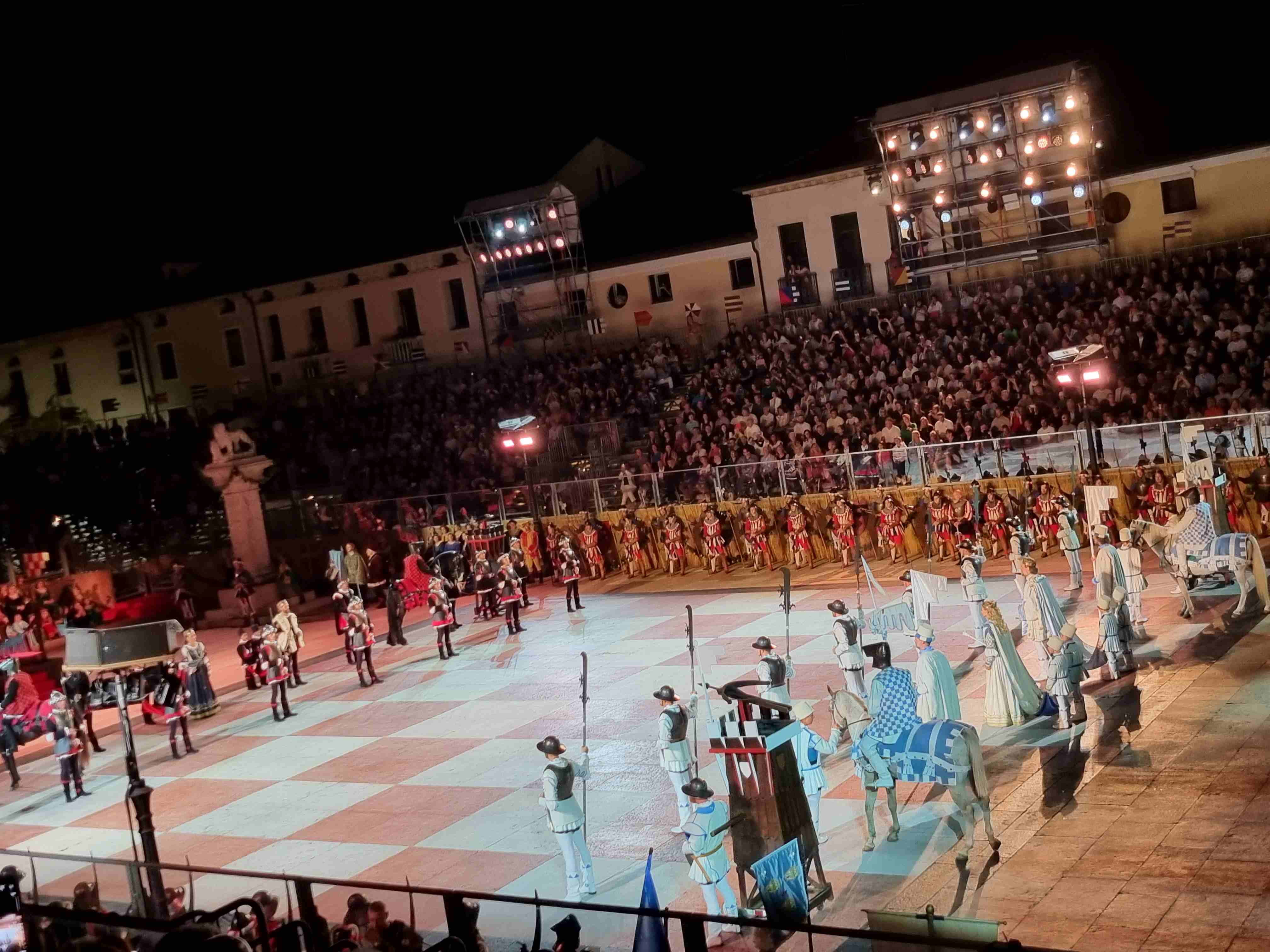 Am Abend führt uns die Reise nach Marostica zum traditionsreichen Schachspiel mit lebenden Figuren, dessen Ursprung bis ins 15. Jahrhundert zurückreicht. Unter freiem Himmel, umgeben von mittelalterlichen Mauern, verfolgen wir dieses einzigartige Spektakel in historischen Kostümen, begleitet von Musik, Fanfaren und Fackelschein. Dieser Abend wird unvergesslicher Höhepunkt unserer Reise sein.